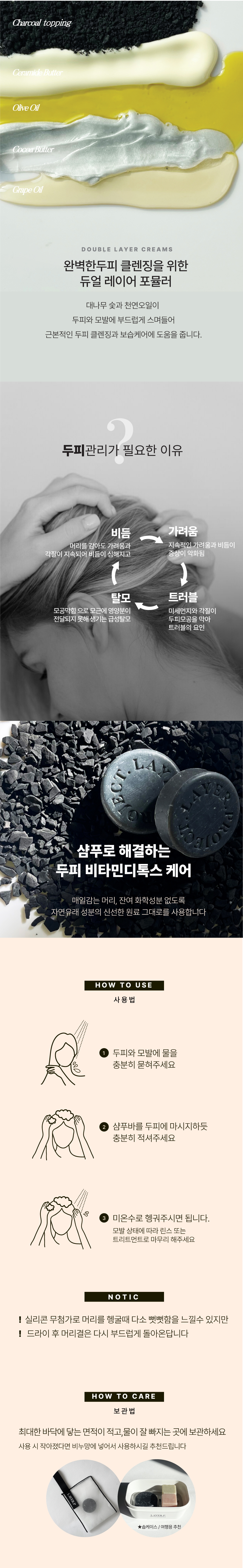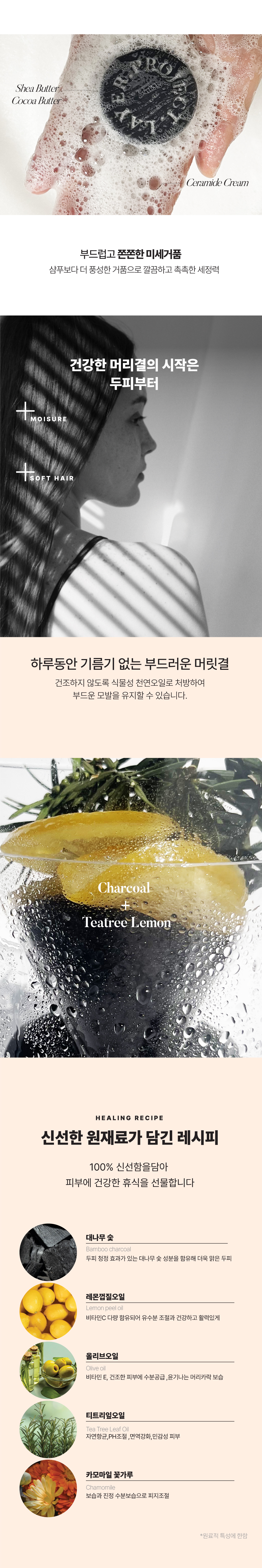 대나무숯과 레몬 성분으로 두피를 깨끗하게 세정하고 모근 볼륨을 살려주는 저자극 샴푸바